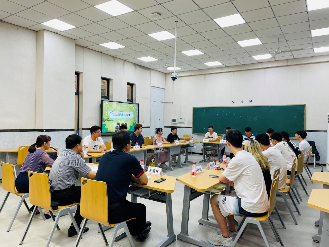2022届本科毕业生代表座谈会在南校区C栋教学楼132教室举行。学院党委书记独国社、副院长辛红、教师代表秦翰林与学院各本科专业20余名毕业生代表参加了座谈会。本次会议由毕业班辅导员陈海涛主持。