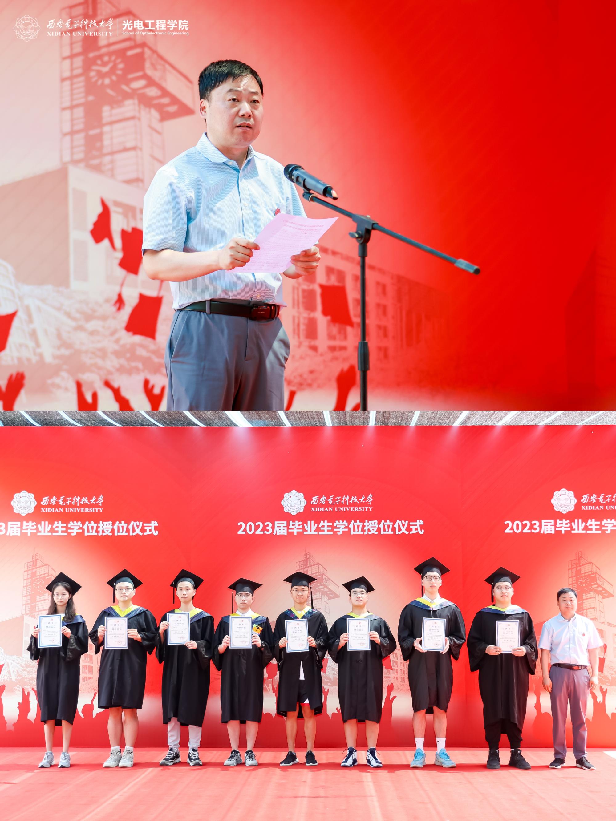 领导班子、全体教职工向毕业生们表示最热烈的祝贺,期望毕业生们离开校园后时刻铭记“厚德 求真 砺学 笃行”的西电校训,在勇敢的探索中感受世界的广阔和多彩,用执着的信念、过硬的本领,开创更加绚丽的人生。