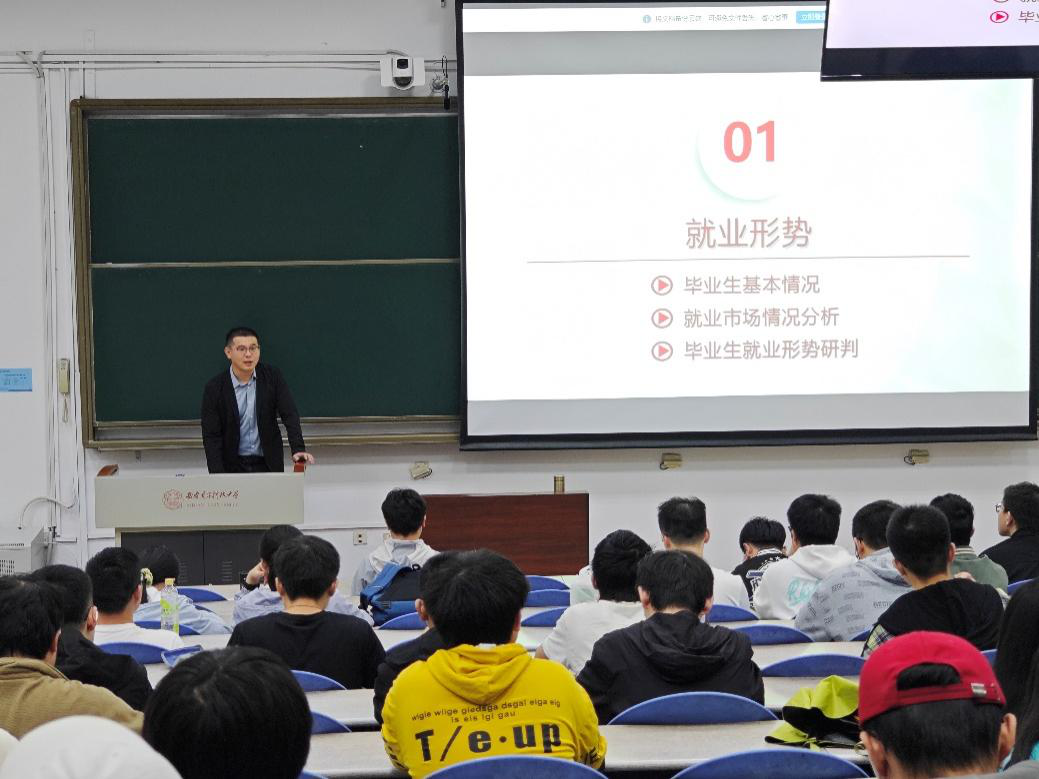 在B527教室以周点名形式联合就业指导中心召开2024届本科毕业生就业动员大会。韩漫基地