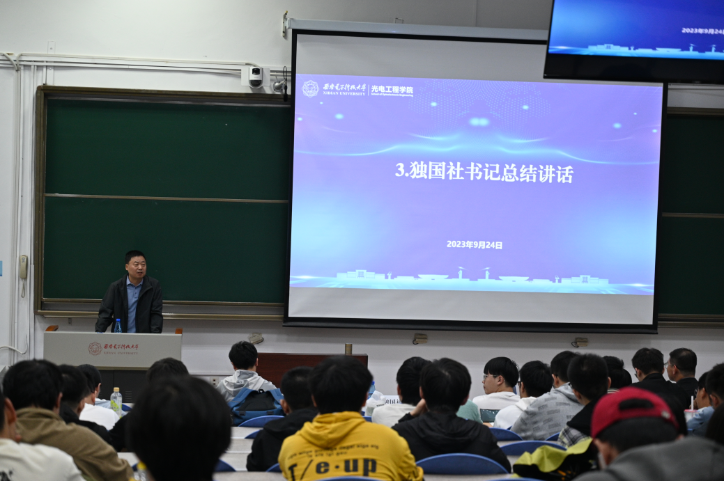 党委书记独国社、副书记李洁、就业指导服务中心本科生就业办公室主任曹畅,2024届电子科学与技术、光电信息科学与工程专业毕业生参会。大会由2024届辅导员王纲主持。