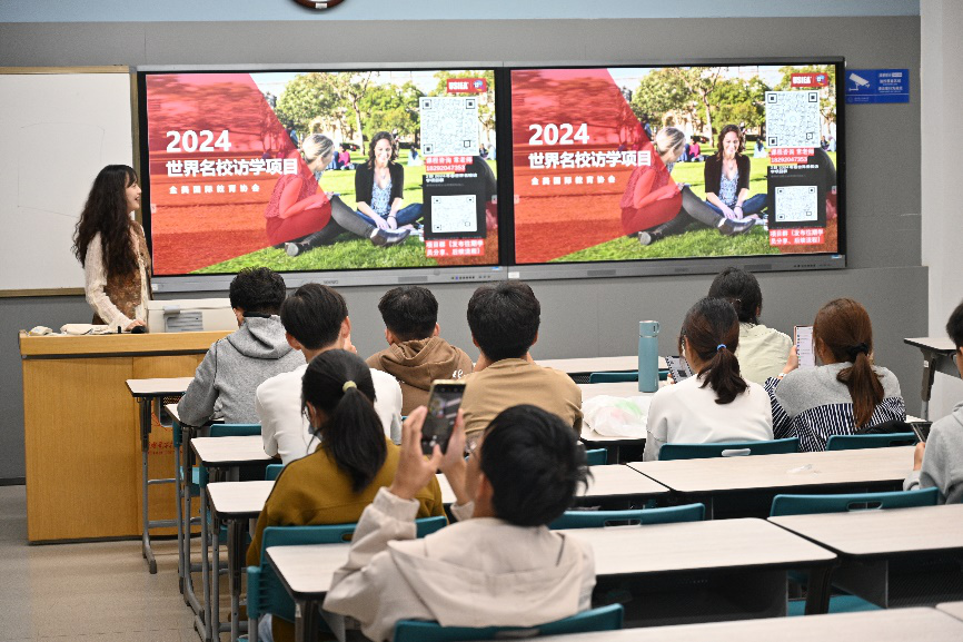 联合全美思行国际教育机构(全美国际)在南校区C楼126召开了“2024年世界名校访学项目宣讲会。2020级、2021级、2022级本科生30余人通过线上线下参会。宣讲会由2020级辅导员、学院外事干事王纲主持。