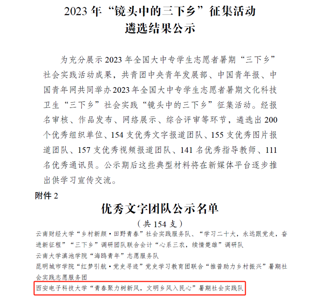 “青春聚力树新风,文明乡风入民心”暑期社会实践队荣获优秀文字团队。