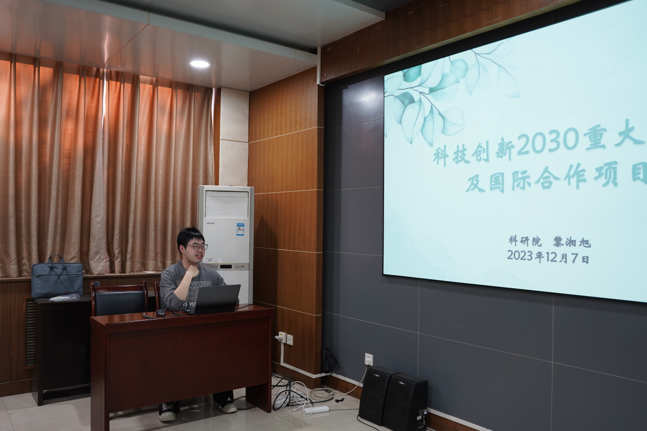 恩临首先就重点研发计划申报进行了要点分享,对项目获批、人员限项、“十四五”专项进行了详细介绍,同时讲解了指南查看方法、投入时间、申报流程等方面需要注意的事项。随后黎湘旭对2030重大项目及国际合作项目的项目指南、限项要求、申报流程做出说明,并介绍了国家自然科学基金国际合作类项目。朱江峰结合自身项目申报经验,对青年教师提出了三个建议:一是有足够技术积累,二是主动参与、放低姿态,三是了解流程、积累经验,希望青年教师在科技部支持下着力突破卡脖子技术。
