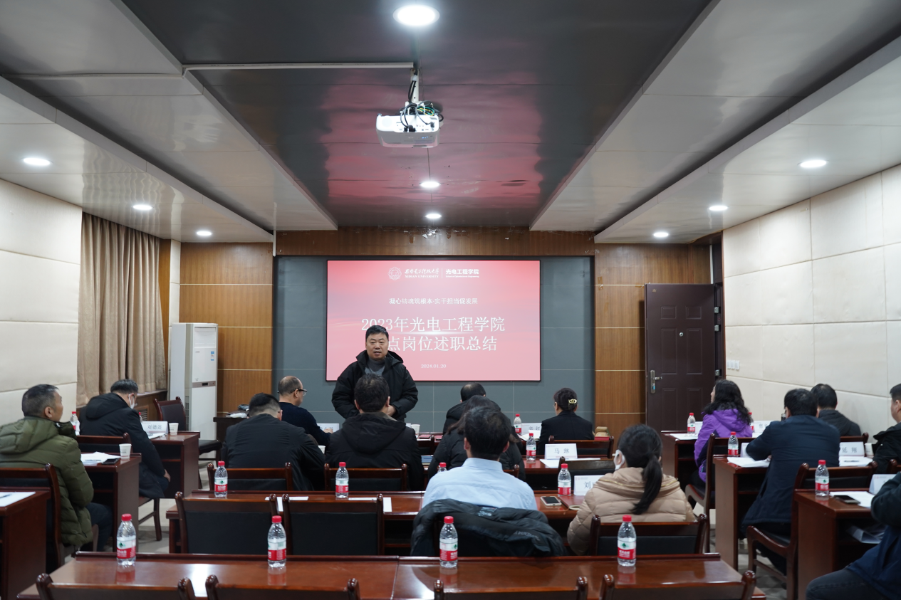 认真贯彻党的二十大精神,不断推动主题教育走深走实,各项事业发展取得显著成效的一年。在此时开展重点岗位及青年教师年度述职评议工作,旨在促进大家对过去一年工作进行自我思考总结和互相对照交流,进一步激发重点岗位人员履职尽责热情,推动青年教师成长成才。他表示,希望通过本次述职交流,充分凝聚起守正创新、团结奋进,开创一流光电学院建设新局面的强大动力,进一步回答好“教育强国、西电何为”的时代课题。