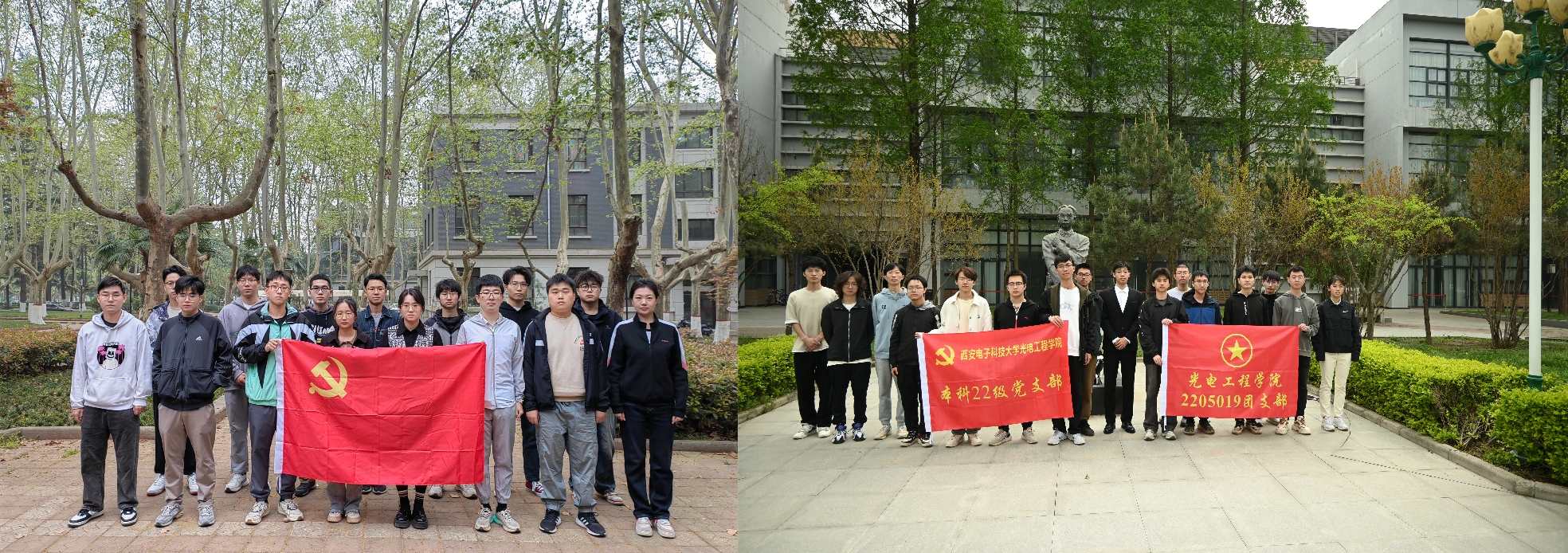 硕士23级、本科22级党员、团员分别在北校区王诤将军雕像以及南校区李白烈士雕像前开展了清明节祭扫及追思活动。