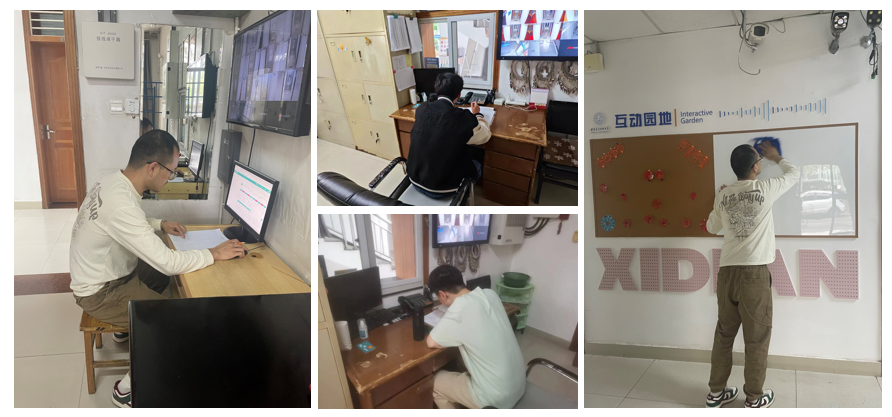 宿舍楼管体验岗的研究生每天固定时段分别前往对应宿舍楼协助楼管进行日常管理,督促学生遵守各项公寓管理规定、提醒学生清理宿舍门口的垃圾,做好借还钥匙登记、外来人员登记、设施损坏登记、报修等工作。房源信息核查岗的同学主要协助楼管进行宿舍空房源的清查、配合楼内做好退宿、换宿人员的相关登记,对已入住学生信息进行核对整改。