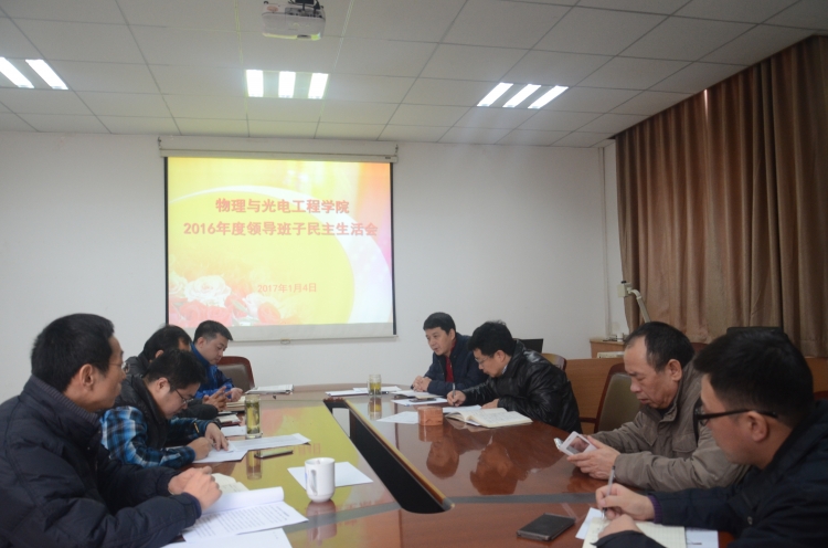 于2017年1月4日在北校区西大楼421会议室召开学院领导班子民主生活会。学院党委书记杨光暐主持会议,执行院长郭立新,党委副书记林波,副院长李平舟、邵晓鹏、周慧鑫等参加会议,学院机关办公室相关同志列席会议。