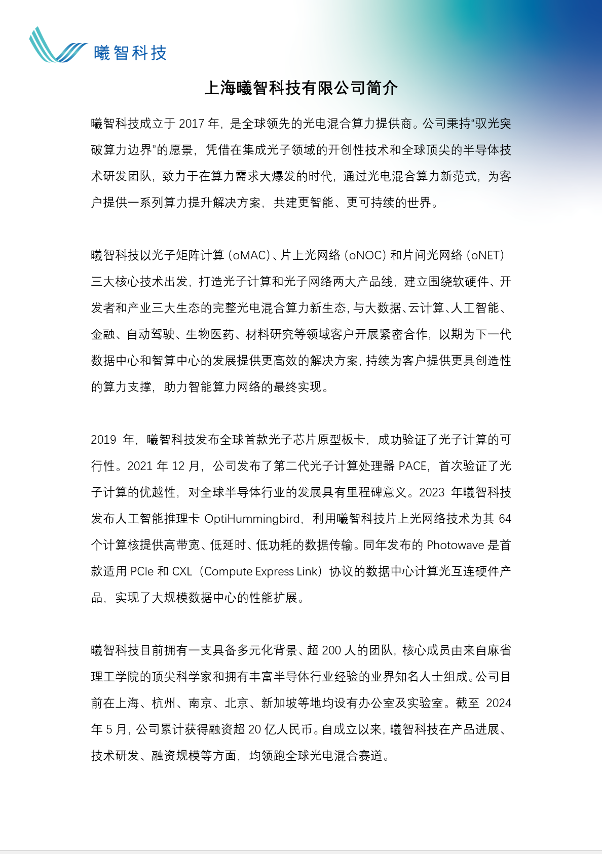 学院一行与公司主要负责人座谈交流,并参观了公司文化及产品展区。光子计算产品线总经理陈辰介绍了公司的创立发展、运营管理及生产研发,公司自2017成立以来,专注于利用光子技术为高性能计算及人工智能计算提供速度更快、能耗更低、时延更优,目前已拥有多项领先核心技术。徐淮良代表学院对“曦智”冠名赞助第十二届全国大学生光电设计竞赛表达了感谢,并表示,学院上下对此次办赛高度重视,已按既定规划完成推进各项工作,后续将继续落实任务、强化细节,在“曦智”及社会各界的大力支持下,办好本届比赛。