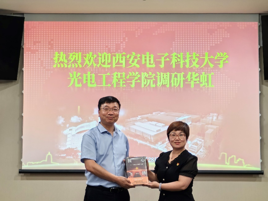 学院一行听取华虹集团发展历程讲解并参观了集成电路制造生产线。在座谈会上,华虹集团党委副书记、纪委书记黄新宇介绍了集团的建立和发展,对“家国情怀、一诺千金、敬业奉献、使命必达”的“华虹520精神”作了详细解读,并表示,西电是光电行业的重点院校,是华虹的重点招聘高校,欢迎更多优秀的西电毕业生到华虹工作。人力资源部副部长、西电00级校友马香柏介绍了西电毕业生在华虹集团的发展情况及近年来面向西电的招聘情况,刘芳芳、祝琳两位校友分享了在校的学习经历、在华虹的工作经历。