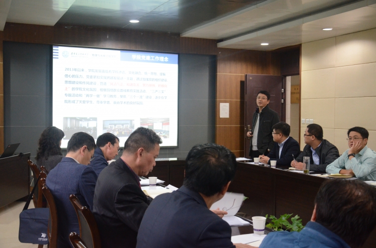 会上,学院党委书记杨光暐对学院党建工作部署及“两学一做”开展情况做了介绍。他在汇报中谈到,学院紧抓理论教育,开展实践工作,力争学出效果,做出成绩。在加强理论教育方面,将传统书本读物与“两微一网”等新媒体平台相结合,打造了多元化的信息获取平台;通过知识竞赛、志愿服务、演讲比赛等多种形式推进学习教育活动,并建立起严格的量化考核机制。在开展实践工作方面,学院“聚焦师德、率先垂范”,将党员先锋作用与师德建设充分融合,形成了特色鲜明的“443模式”。更通过开展“良师益友”计划、“学院之星”评选、“头雁领航”活动,达到了推举模范、树立标杆、优化服务的目的。