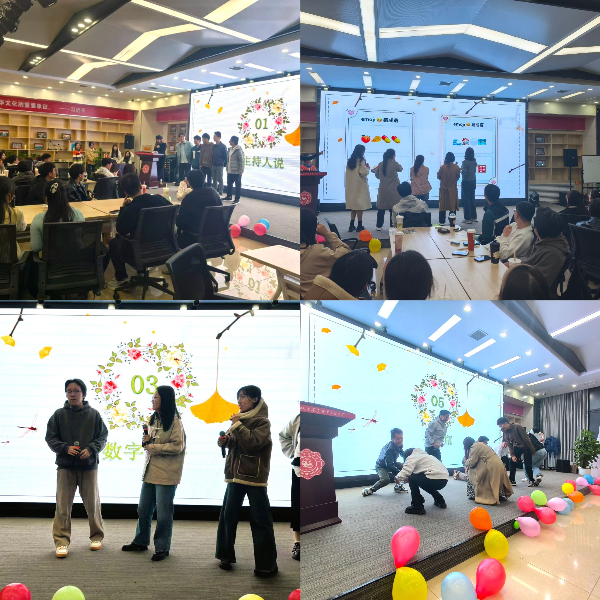 活动初篇,是破冰小游戏的温馨序曲,现场氛围热烈而温馨。“主持人说”互动环节,参与者依令而动,迅速点燃气氛。“表情包猜词”环节,趣味表情符号引得众人踊跃猜测成语,笑声此起彼伏。“数字陷阱”环节则考验着大家的运气与逻辑思维。而紧张刺激的“抢水瓶”比赛,将活动气氛推向高潮,参赛者们全神贯注,竞争激烈。在游戏中,大家增进了对彼此的了解,在默契的配合中,心灵的距离被悄然拉近。