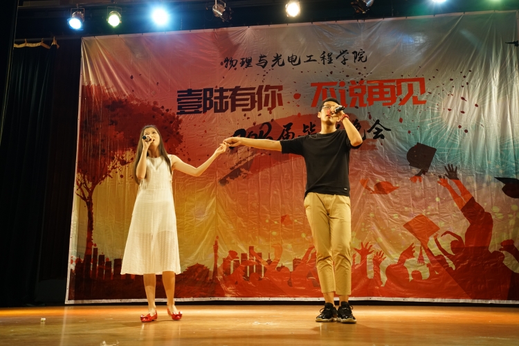 晚会在青春洋溢,激情四射的现代舞中精彩开场,动感的节奏、奔放的旋律迅速点燃了现场的热情。本场晚会精彩纷呈、亮点不断,既有歌曲串烧、拉丁舞、街舞等歌舞表演、也有魔术、乐器演奏等曲艺形式,还有相声、诗朗诵等语言节目。节目由同学们自编自导自演,内容丰富多彩,记录了大学四年的青葱岁月,表达了同学们对母校的感恩与留恋,辅导员老师们带来的华尔兹表演更是引得台下欢呼声不断,将现场气氛推向了高潮。晚会以毕业生同学改编的歌曲《不说再见》收尾,处处涌动着同学们对母校的难舍深情。
