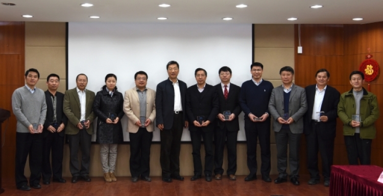 怀进鹏理事长向2015年度学会会士颁发《会士证书》和会士水晶杯
