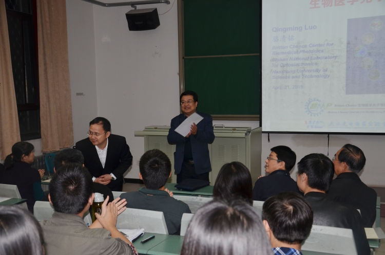 4月22日晚,应学院邀请,华中科技大学副校长、武汉光电国家实验室(筹)常务副主任、我校校友骆清铭教授在北校区西大楼Ⅰ-106教室作了题为“生物医学光子学进展”的专题学术报告。报告会由学院执行院长郭立新教授主持,学院党委书记杨光暐、部分教师以及百余名学生参加了报告会。