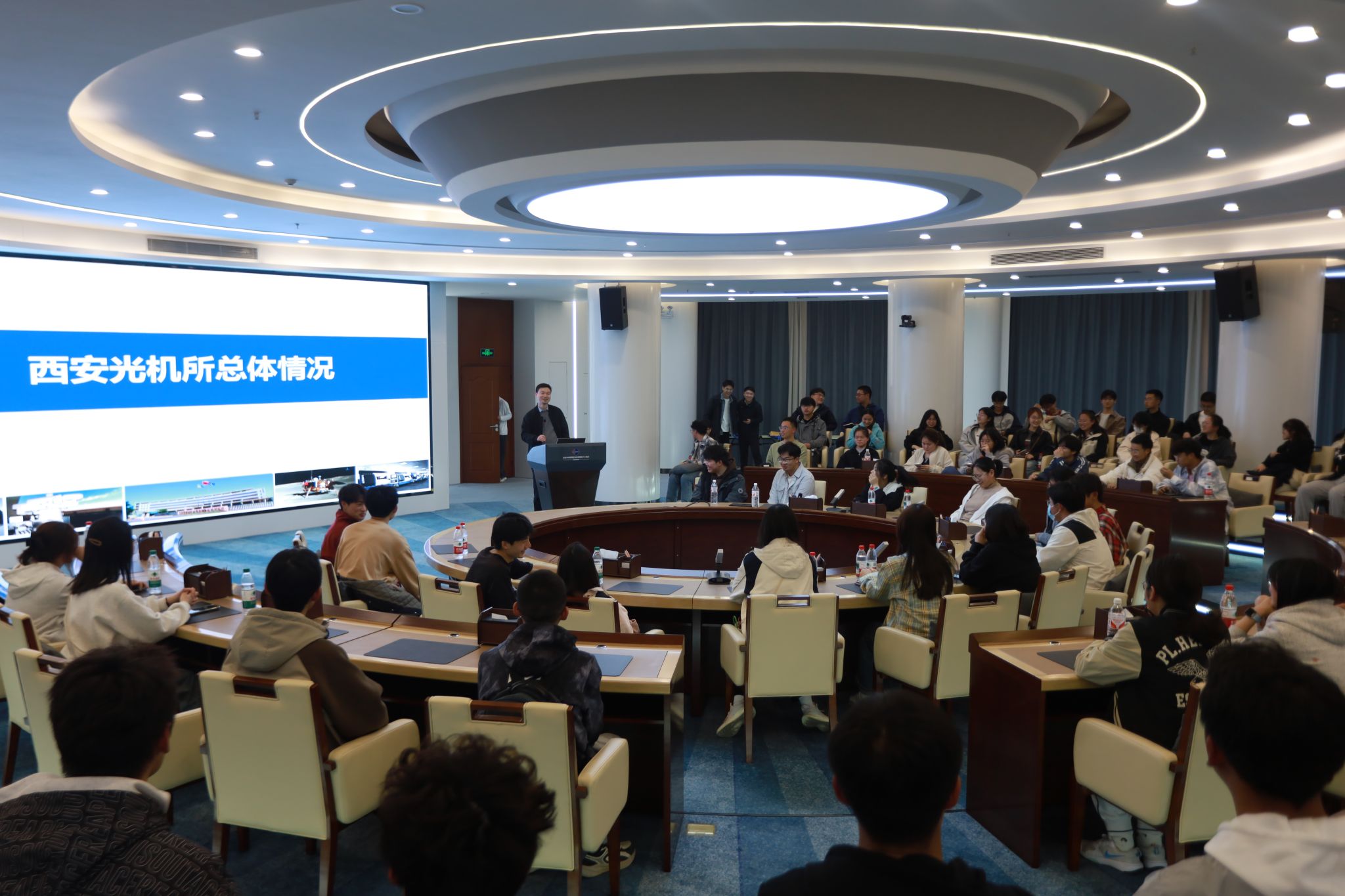王博研究员为来访师生介绍了光机所发展历史、研究特色、科研成果、人才培养等方面,讲座如一盏明灯,照亮了同学们的科研之路。他详细讲述了西安光机所的发展脉络、涵盖瞬态光学、空间光学、光电工程等多元的研究方向,以及其在国家重大任务中的卓越功绩,同学们听得津津有味,对科研世界的好奇被充分点燃。