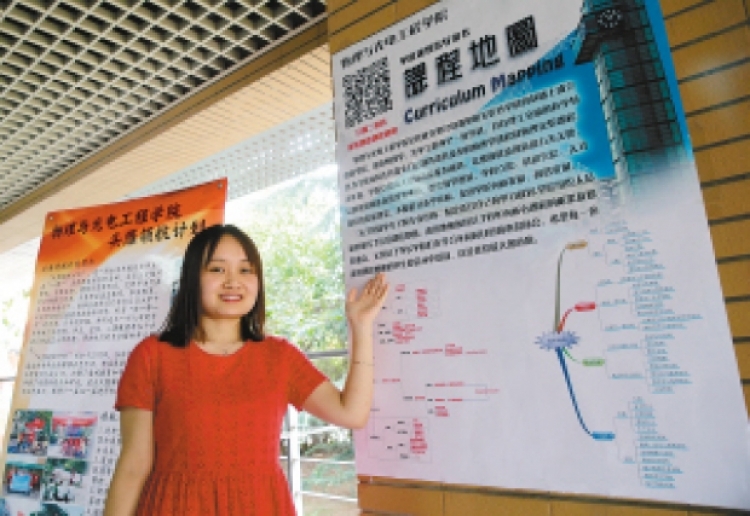 学校工作人员介绍大学生为学弟学妹们制作的“课程地图” 记者 尚洪涛 摄