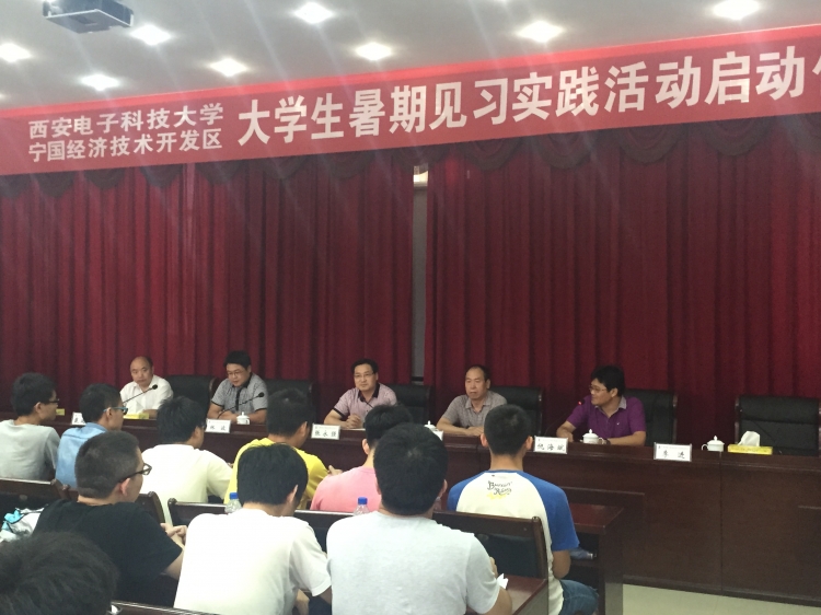副院长李平舟,党委副书记林波,开发区党政办、经发局负责人及首批参加暑期生产实习的100余名学生参加仪式。