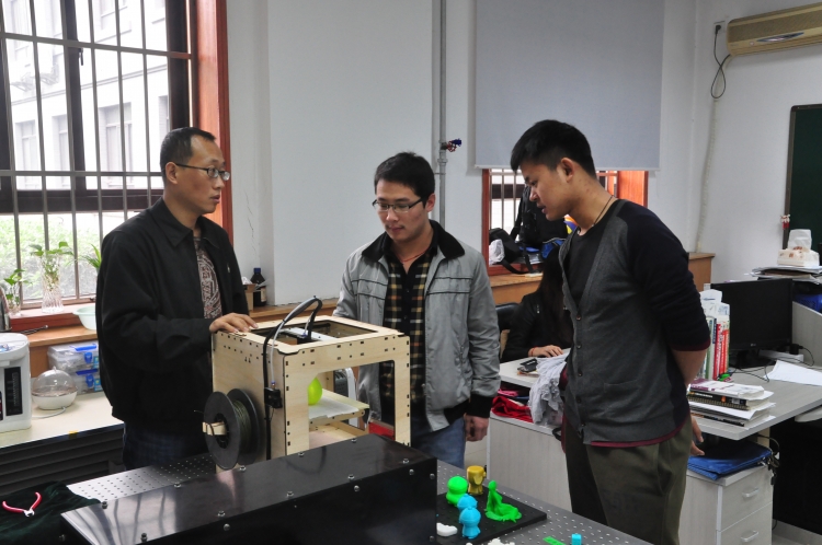 正是看到3D打印技术的广阔应用前景,程坤进入研究生阶段后,就萌生了自己研制一台3D打印机的想法。在导师邵晓鹏教授的支持下,程坤运用自己在机械设计、产品研发等方面的知识积累,开始了3D打印技术的研究之路,并联系志同道合的同学朋友,组建了“3D打印技术”研发小组。在近一年的刻苦钻研,上下求索的阶段里,他们每天出入图书馆,利用学校的电子数据库,查阅了大量的国内外文献资料,为3D打印技术做好了坚实的理论支撑。同时关注3D技术的最前沿动态,通过虚心的请教和耐心的试验,研发小组先后攻克十余个技术难关,并不断进行完善改进,终于在2014年的暑假,研制出第一台桌面级3D打印样机。