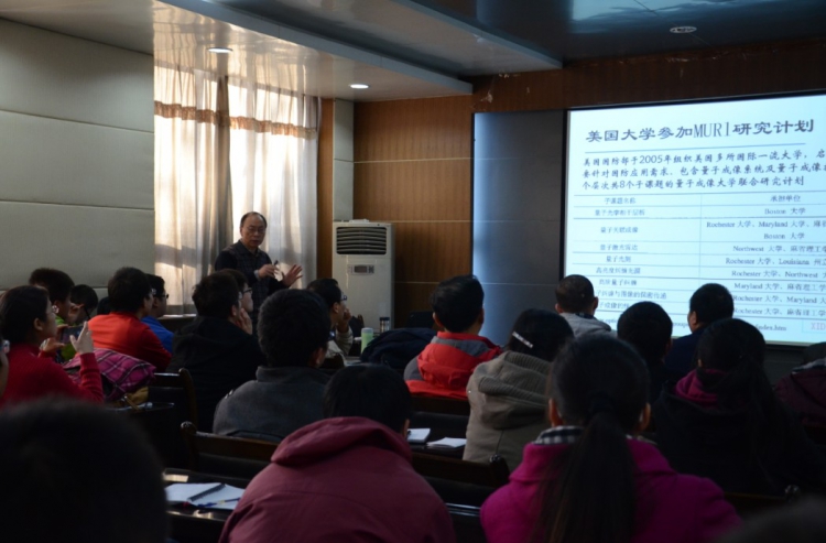 “量子鬼成像”这一概念引起了学生的极大兴趣,报告厅内座无虚席。杜磊教授首先从“鬼成像”的基本原理讲起,介绍了量子成像的概念、发展及应用,并介绍了自己近期的研究成果。杜老师提到,量子信息学的发展具有广阔的应用前景,对我国的发展充满了机遇,但同时也充满了挑战,在量子信息化的发展道路上有诸多难题亟待解决。会后,从事量子信息学研究的老师与研究生们进行了热切的互动交流。