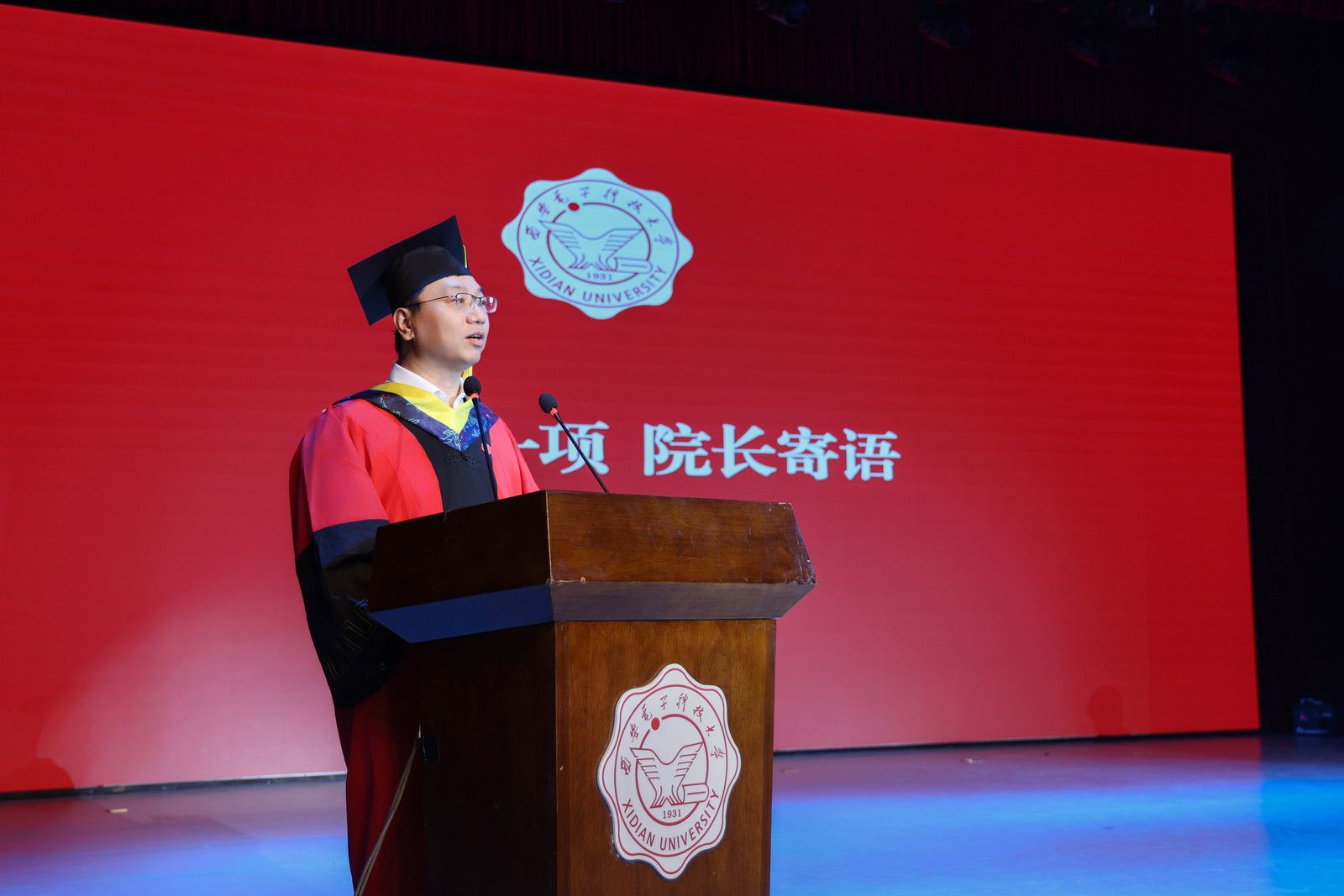 领导班子和全体师生向毕业生们表示最热烈的祝贺和最美好的祝愿,对学院近年来在教学改革、科研创新、人才培养等方面取得的显著成绩进行了回顾与总结,向全体师生、校友的支持和帮助表示感谢。他亲切寄语毕业生,并提出三点期望:一是希望同学们成长为具有家国情怀的人,经营好自己的小家,同时为推动光电事业发展、国家科技进步贡献西电力量;二是希望同学们成长为德才兼备的人,在工作生活中恪守诚信,通过不断学习,成为具备独立思考能力、适应当今数字化发展的社会精英;三是希望毕业生能够铭记西电校训,运用在学校学到的知识和技能,勇敢面对困难、不断创新,未来以“西电光电人”的身份走向更广阔的天地。