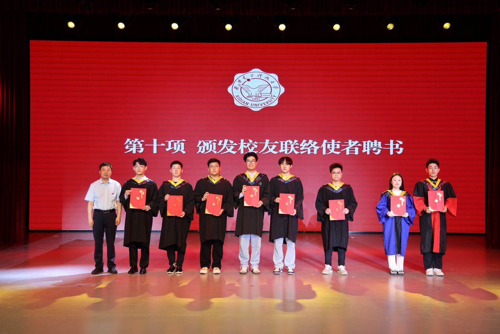 表彰环节,副院长辛红、副处级组织员黄小强分别为2025届优秀本科、研究生毕业生颁发荣誉证书,西安诺瓦星云中研院实验室主任、2008级校友林先萌、学校校友事务与对外合作处副处长兼对外战略合作办公室主任曹立砥分别为获得2023-2024学年诺瓦星云奖(助)学金、美华奖学金及其提名奖的学生代表颁发荣誉证书并合影留念,对获奖同学表示祝贺。