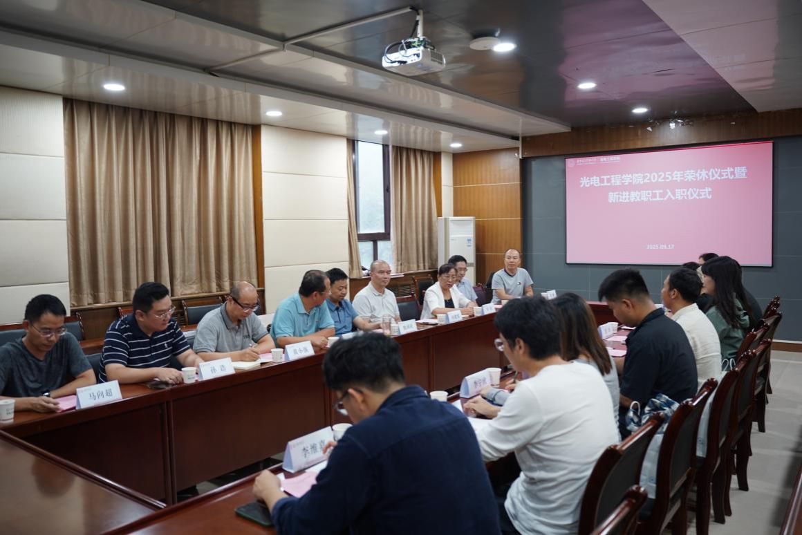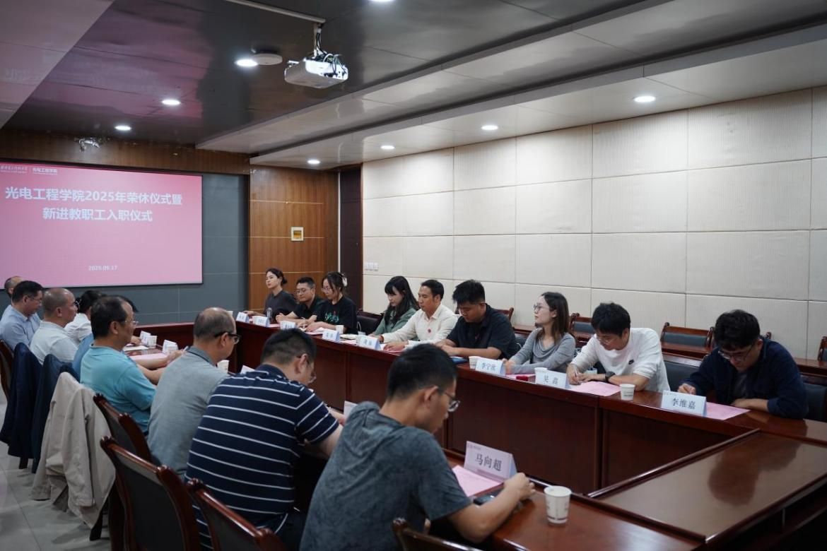 在北校区西大楼Ⅲ-412会议室举办2025年荣休仪式暨新进教职工入职仪式。学院领导班子成员、荣休教师、系、所(中心)负责人代表、团队教师代表、新进教职工及办公室人员等参加活动。活动由副院长辛红主持。
