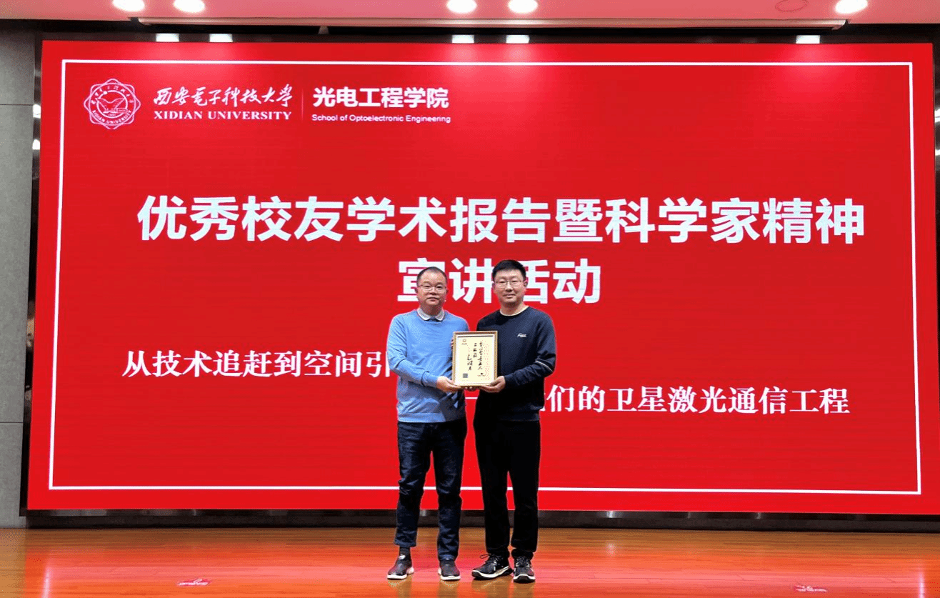 举办“追光·深耕”系列优秀校友学术报告暨科学家精神宣讲活动。学院2009届校友、航天五院西安分院激光事业部系统技术研究室主任、全国宇航专用计量技术委员会委员张文睿受邀做专题报告,学院激光技术系党支部书记曹长庆、电科第一党支部学生党员及2024级本科生近300人参加活动。