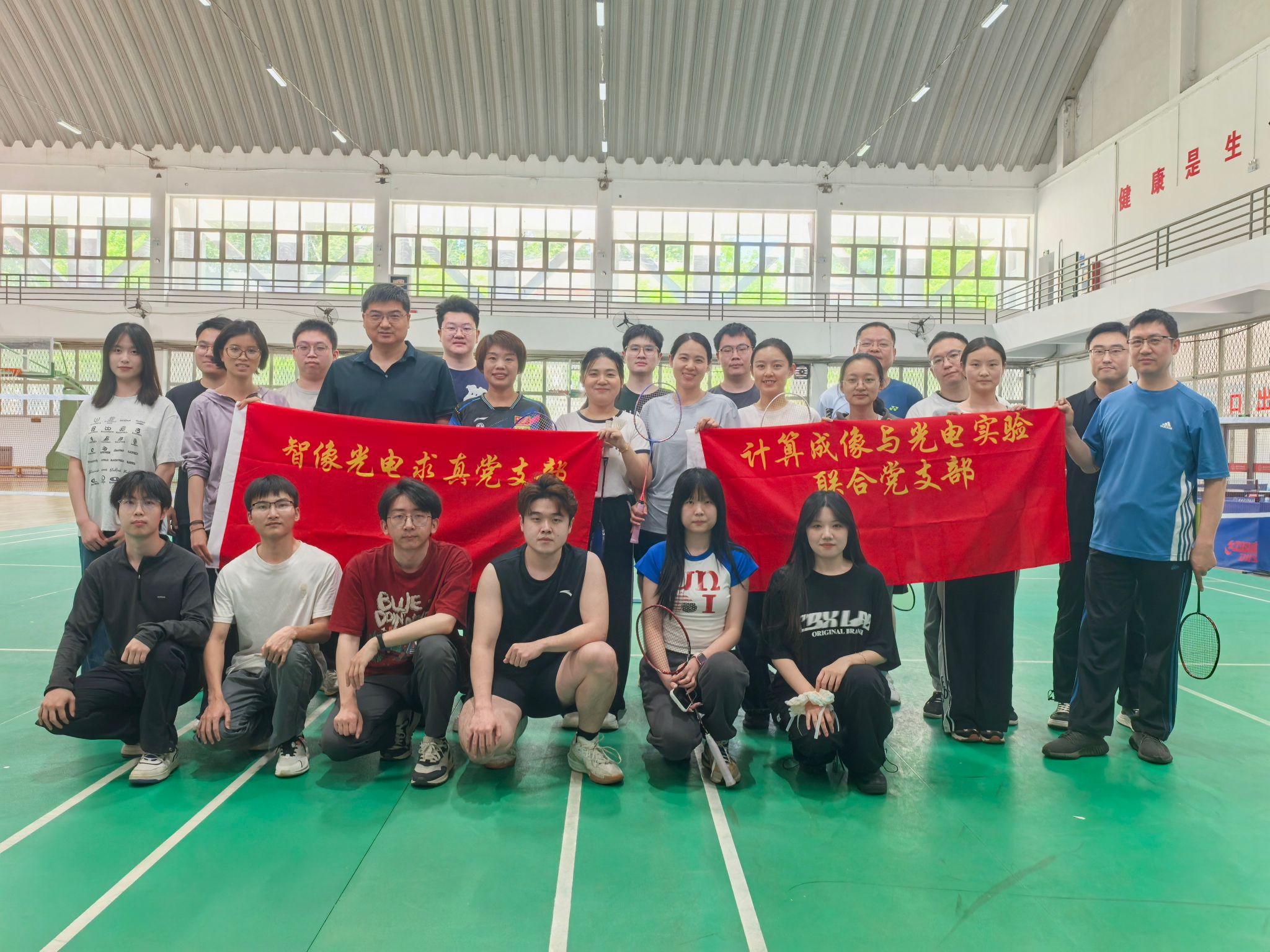 师生党支部于雁塔校区体育馆联合举办“强身健体展风采,团结聚力促科研”主题党日活动,活动以羽毛球比赛的形式开展,20余名教职工与研究生党员参加活动。