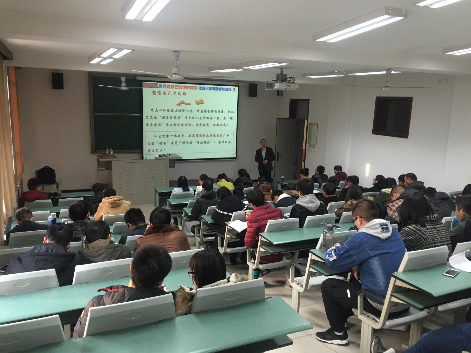 整个报告会持续了近一个半小时,弓树宏老师质朴的语言、幽默的谈吐、对待生活和工作的激情和热情感染了现场的每一位同学,报告期间掌声、笑声不断。