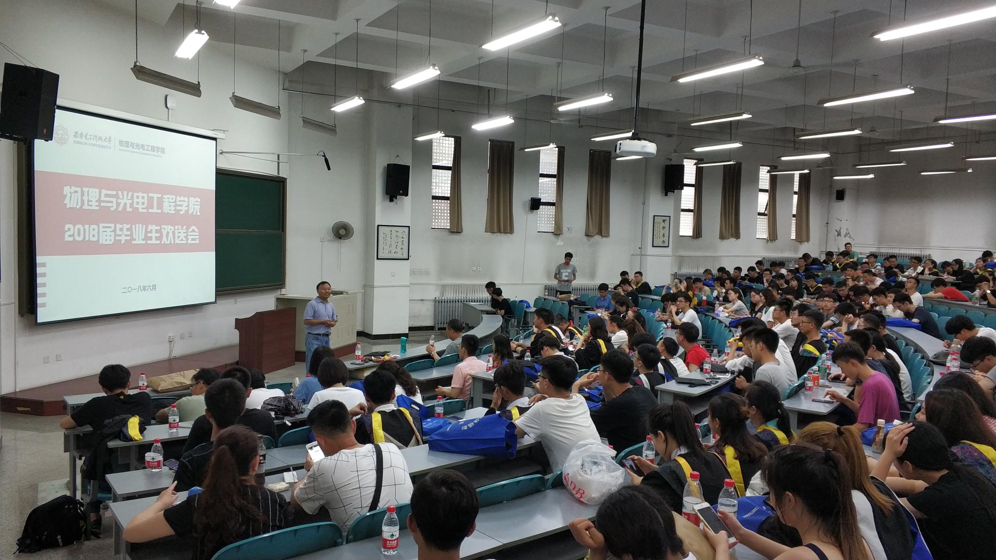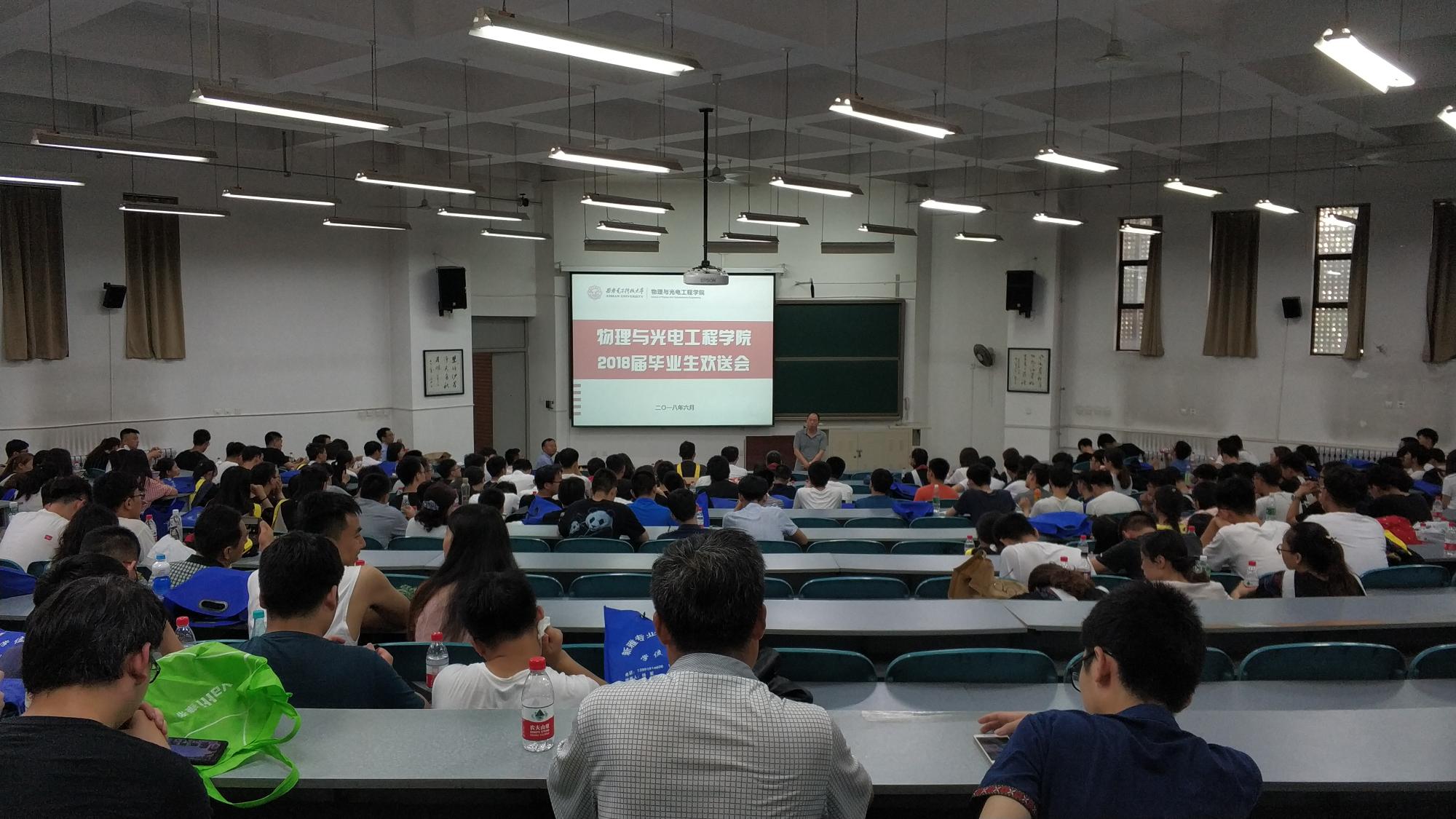 6月25号上午,授位仪式开始前,学院2018届本科毕业生欢送会在D楼206教室举行。学院副院长李平舟、“毕业生最喜爱教师”代表朱江峰以及学院2018届全体毕业生共同参加了欢送会。欢送会由毕业班辅导员陈海涛主持。