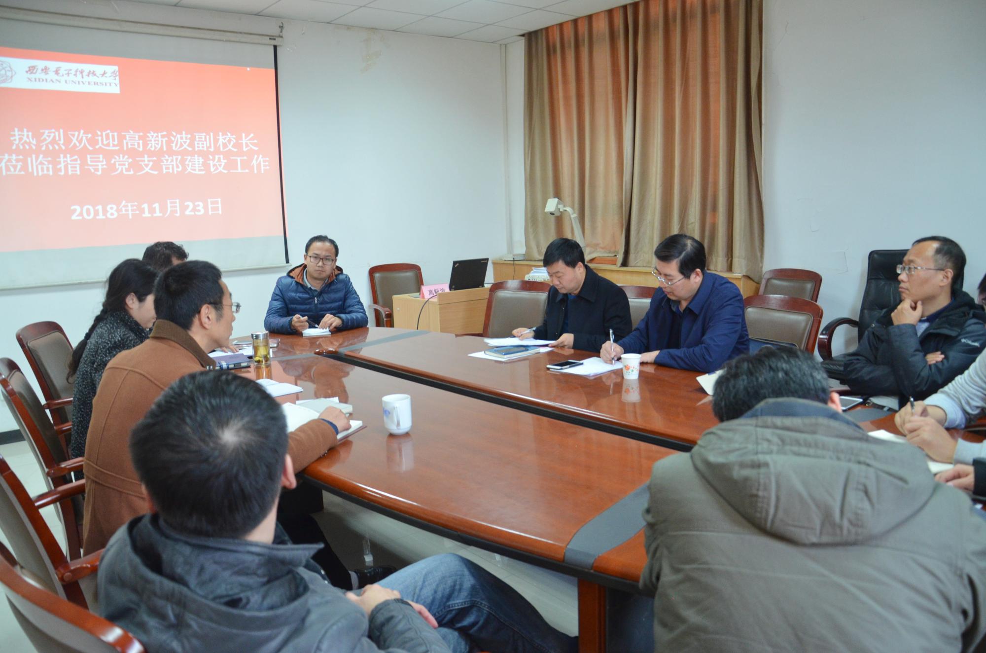 高新波谈到,将党支部建设与教学科研、学校建设发展结合起来很有意义。一方面有助于进一步清晰科研教学工作的思路和方向,另一方面也能够使党员教师在教学科研方面的带头模范作用落实到实处。他从国家学校层面介绍了大平台建设、学科布局、学科调制等相关内容,指出面对未来国家重大规划和发展方向,学院要提前谋划布局,进一步提高学科专业水平,加强学科内涵建设,要将总书记讲话精神落实在西电大地上。同时,他还与参加活动的全体党员交流了研究生招生、职称评审、办公用房、南北校区人才房等热点问题,鼓励党支部充分发挥“以柔克刚,人文关怀”作用,为推动学校发展做出更大的贡献。