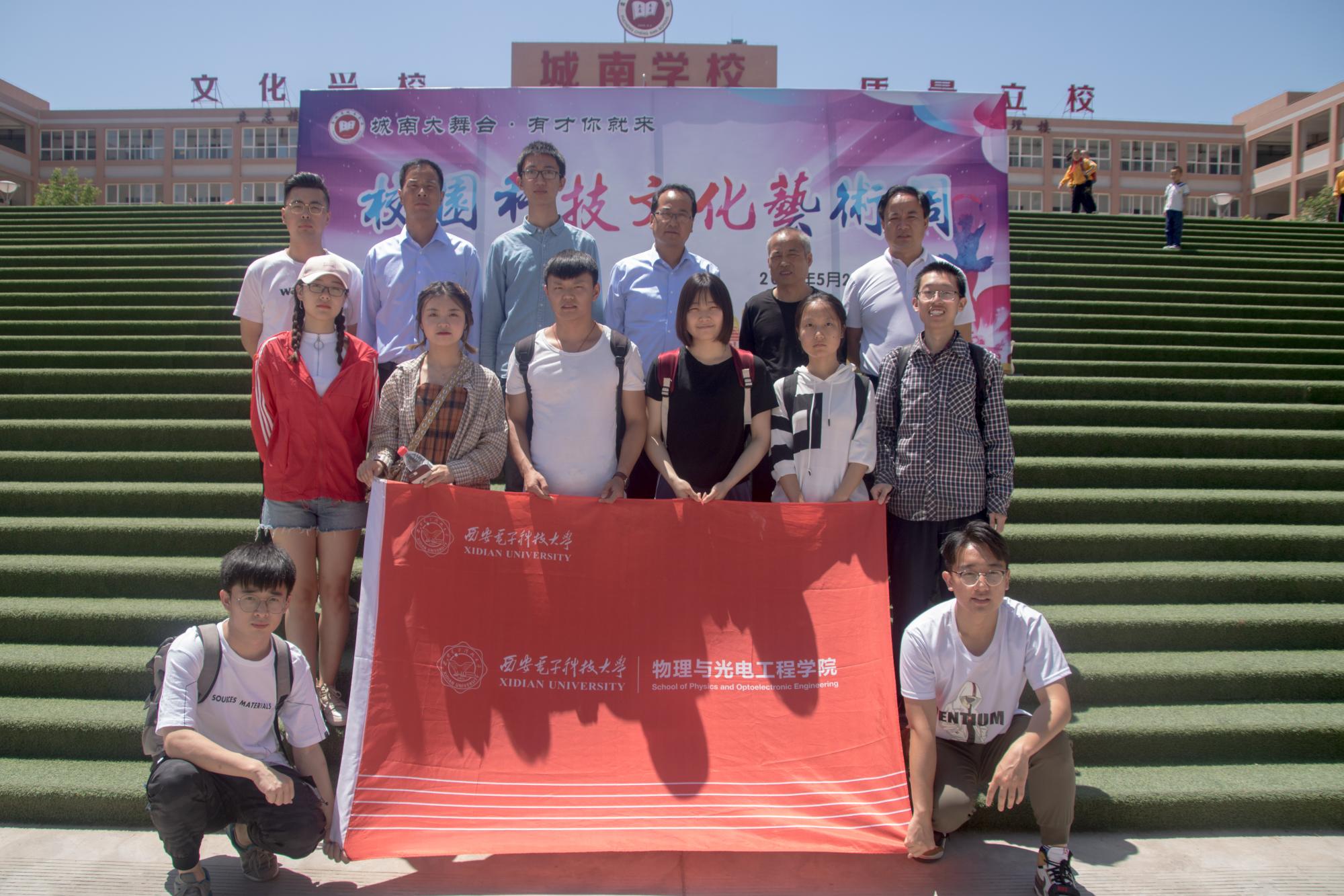 师生代表在蒲城县城南学校举办“科学文化艺术节”之际,前往城南学校开展科技作品展示活动。本次活动由2018级本科生辅导员王晨辉带队,学院学生会、科协等部分学生干部共同参与了本次活动,蒲城县城南学校党支部书记苏安文、校长许顺强、副校长蒲小明接待并参与了相关活动。