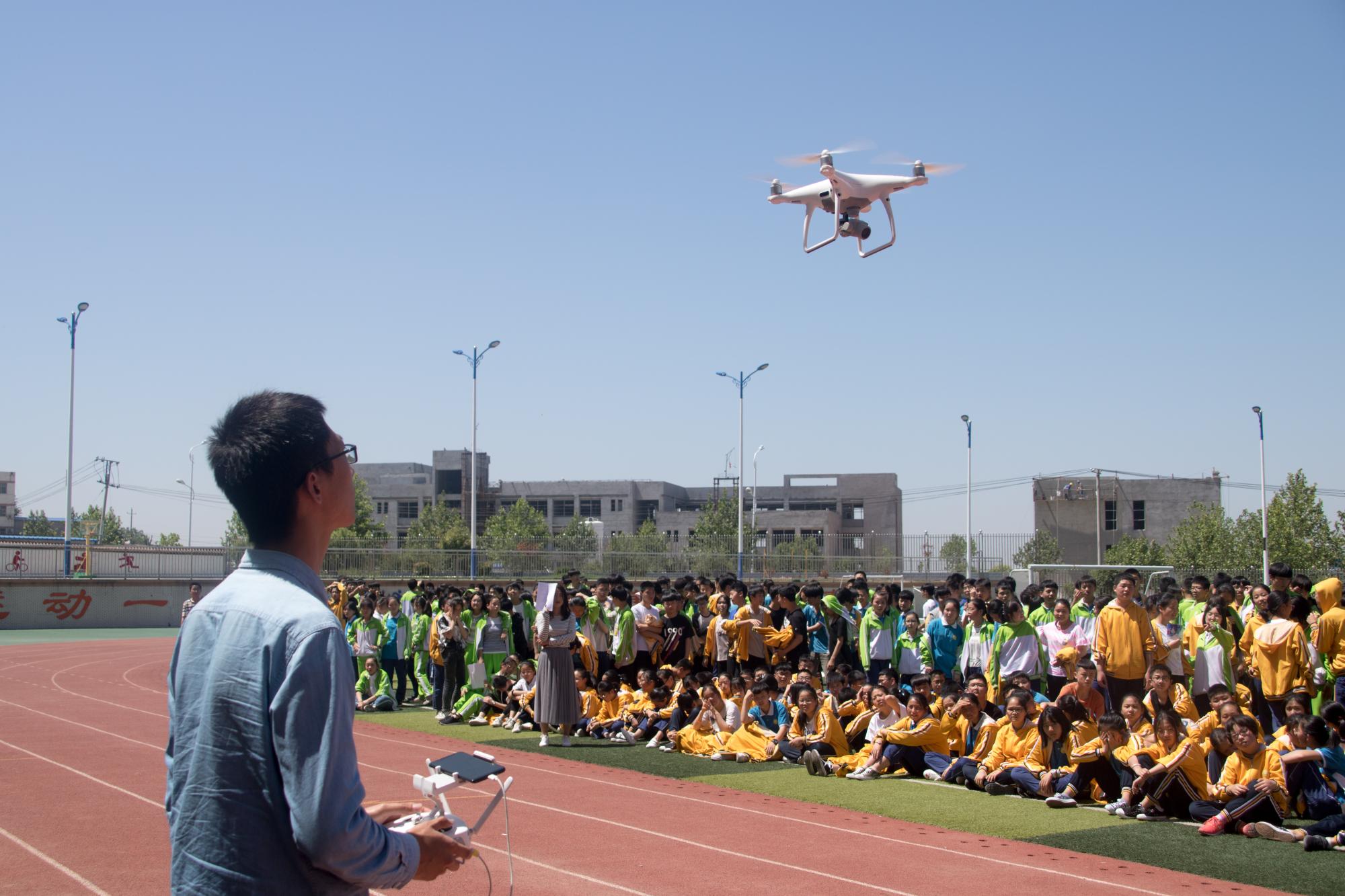 城南学校在会议室接待了学院师生,许顺强首先对学院师生的到来表示热烈欢迎,并对以往学院对城南学校的帮扶表示了真诚感谢,向大家介绍了本周学校“科学文化艺术节”的基本情况,物光院带来的科技展示必将为本次活动添彩。随后,学院师生在操场向全校2000多名师生进行了科技作品展示。超声波避障小车、红外避障小车、多功能坦克车等都给城南学校的学生们带来全新的科技体验,很多学生都积极上前进行了实际操作,近距离感受科技创新成果;在之后的无人机飞行表演中,两架无人机交错飞行,时而低掠过人群,时而高升入天空,城南学校学生在操场上摆出了“XD”(西电)字样,现场的气氛达到了高潮。通过互动让同学们了解到科技作品的创新趣味,城南学校的同学们争先恐后参与体验互动,表现出了极大的兴趣和热情,许多老师和家长也都纷纷上前观看这些科技作品。最后,许顺强致辞,对韩漫基地