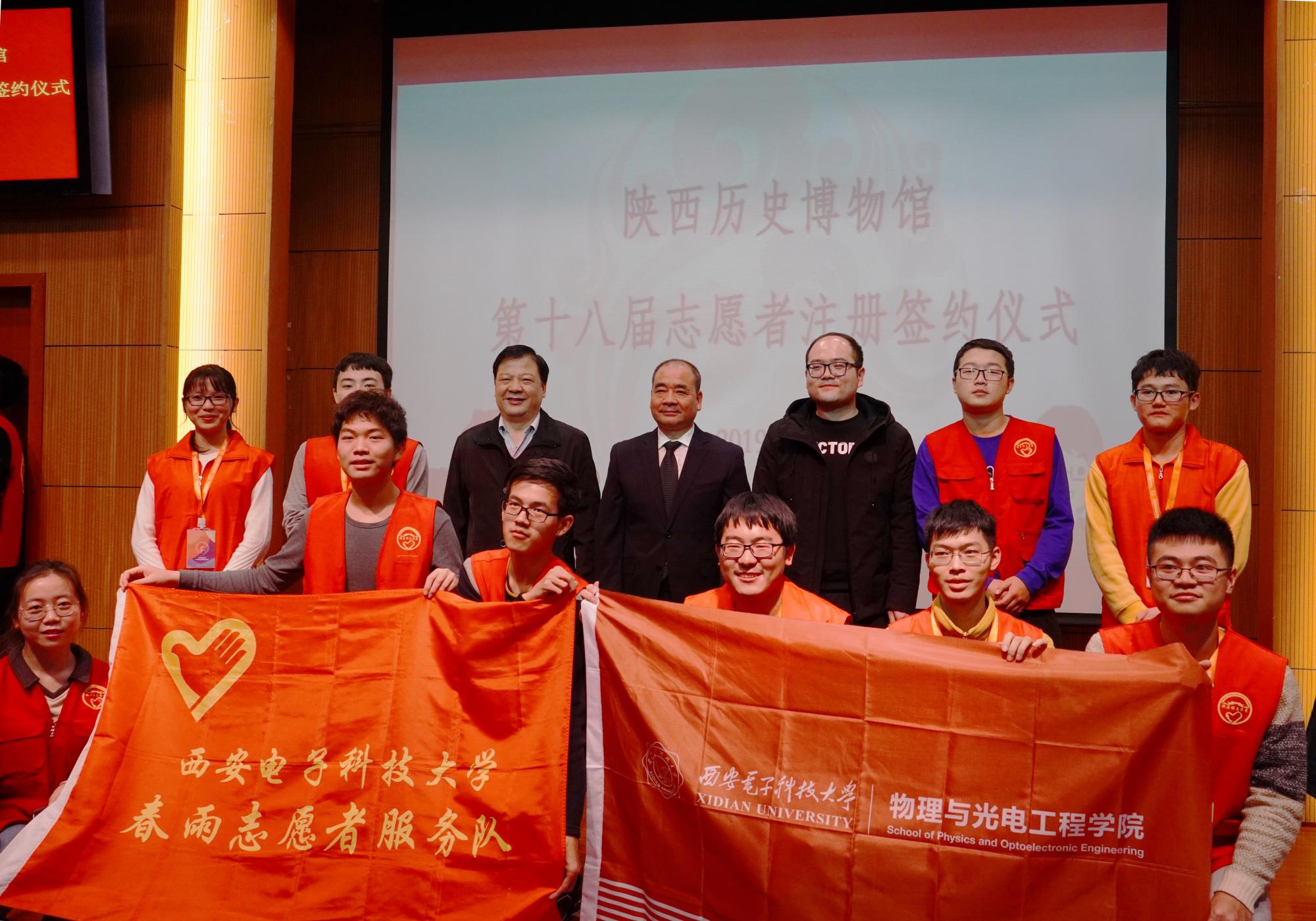 物光春雨志愿者服务队成员张婕、宗思辰、石一诺、黄钲海、周宇轩、赵艳慧、邱彦勋、陈泽浩、马明、冯新民等十名同学荣获“2019年度陕历博调查问卷优秀志愿者”称号,张世纪荣获“优秀志愿队队长”称号,张婕受聘“2020年陕历博志愿服务队队长”。这些荣誉是对全体春雨志愿者服务队成员2019年志愿服务工作的认可,他们也将在未来的志愿服务过程中继续用爱心传递文明、用真情奉献社会。与此同时,侯宁彬与陈海涛签署并交换了2020年志愿服务工作协议书。