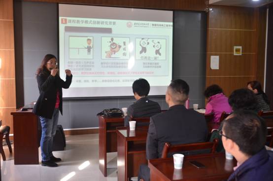 赵文娟副教授以《大学物理课程混合式教学模式研究》为主题,针对课程教学中实际存在的学生体验差、对学习感觉茫然、缺乏学习效果反馈和有效互动,教学设计、教学实施缺乏针对性、精准性,难以激发学生积极性、主动性,忽略学生主体性等问题进行了分析,提出要有针对性地进行教学设计,通过线上线下混合协作学习,积极利用网络资源自由探索,通过案例式教学引发兴趣,通过同伴教学提升思维,构建以学生为主中心、师生互联、多维沟通、多维考核、注重过程的课程教学体系,实现教师向学习活动组织者、学生思维引导者、课程教学开发者、教育工作研究者、终身学习实践者的转变。