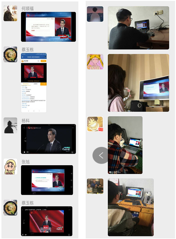 课后,研究生针对课程内容积极交流,各研究生党支部就 “疫情期间,火线入党”、“向支部参与抗疫志愿工作的党员先锋学习”,“疫情防控期间支部‘三会一课’工作开展”,“疫情期间党支部建设特色做法”等相关内容展开了热烈讨论。在各班防疫小组的交流中,“身边的抗疫英雄”、“疫情防控小贴士”、“疫情中的焦点社会问题”,“保持乐观情绪,排解毕业压力”、“同心协力,战‘疫’必胜”等成为了关注度高,参与广泛的话题。大家在讨论交流中,广开思路,各抒己见,相互勉励,让还未开学的党支部、班集体在互联网中紧紧地凝聚在一起。在学习中,大家进一步加强了对“四个自信”的理解和体会,纷纷谈到党中央在疫情攻防战中的全面领导指挥和果断正确决策是开创目前防疫良好局面的关键。充分认识到了中国特色社会主义制度在攻坚克难办大事上的无往不利,充分了解到了中国共产党员在战“疫”工作中的先锋带头作用,充分感受到了中华民族在艰苦卓绝中坚韧顽强的民族精神。