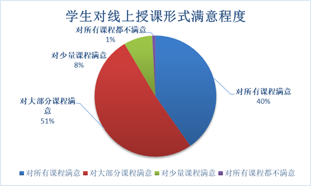 通过对问卷的分析,我们了解到学生在开课后基本上保持了较好的在线学习积极性,学校在线授课的各种保障措施对疫情期间学生正常学习生活节奏的恢复和心理的调适起到了积极促进作用。学生普遍感受到了学院、学校的积极应对和努力付出,对于线上教学表现出良好的评价态势。