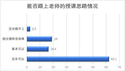 有86.2%的学院大一学生认为大学物理教师整体线上教学效果比较好,有78.5%的学生感觉自己可以跟上老师的授课思路。这说明大学物理网络授课在大一学生群体中取得了较大的认可。