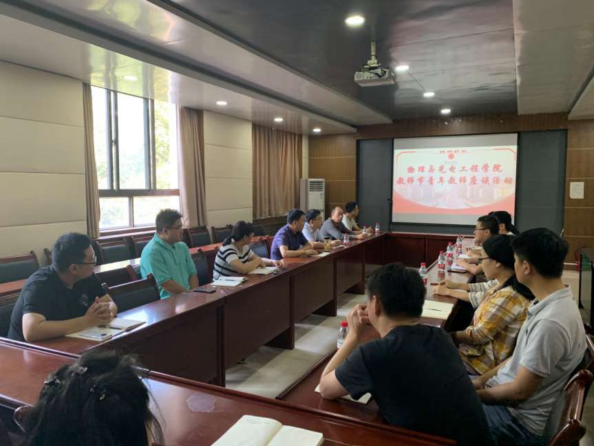 于北校区西大楼三区412会议室举办教师节青年教师座谈会,学院党委书记独国社、副院长辛红、李平舟教授及12位青年教师代表参加了本次会议。会议由青年教师沙龙秘书贾春刚主持。