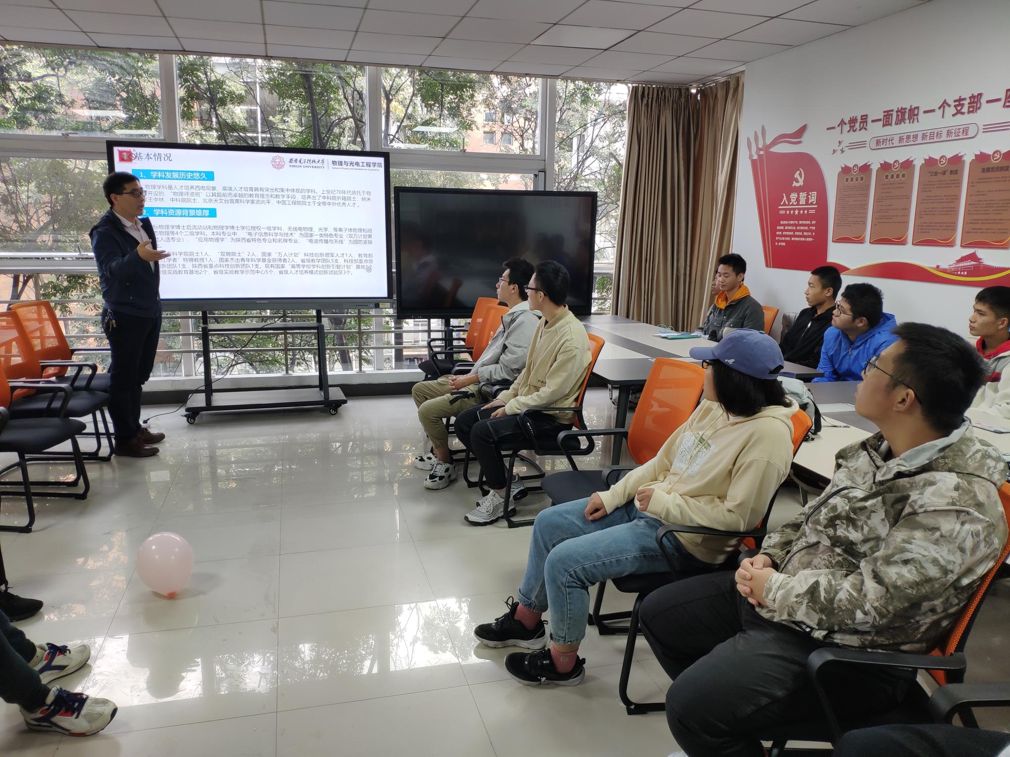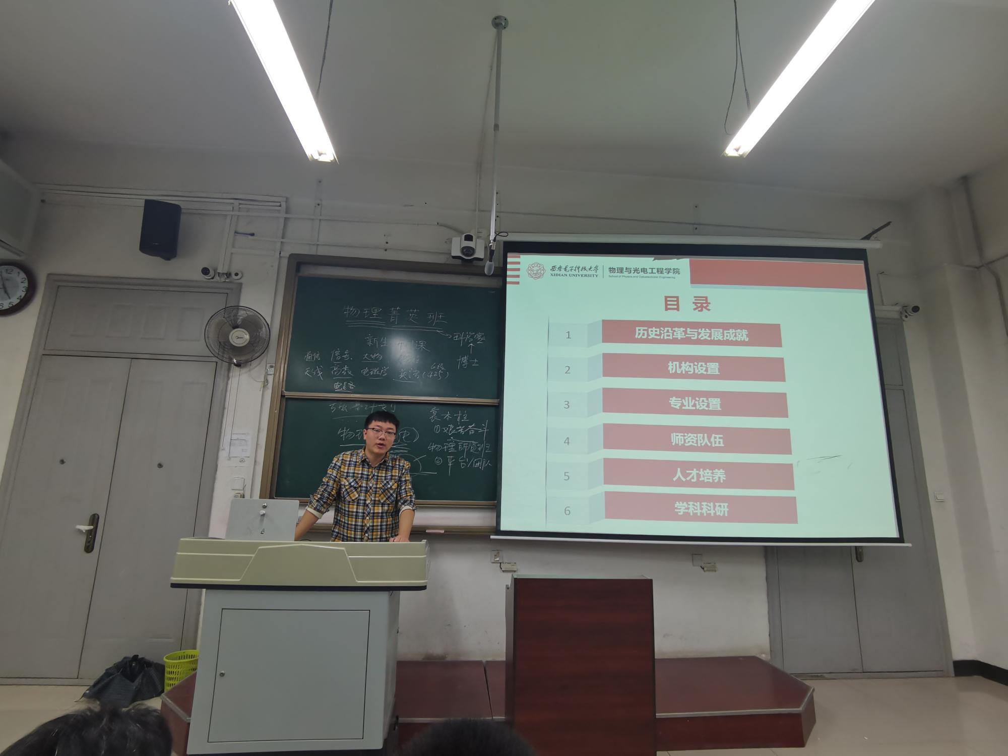 2020级新生辅导员袁本柱在A楼220教室为物理菁英班全体同学带来了一场别开生面的新生研讨课。课堂由物理师资班的故事展开,他在课上说到,发扬“艰苦奋斗”的西电精神是学好基础学科的必要条件,肯吃苦,多钻研才能悟出物理的乐趣。同学们纷纷表示将潜心学习,重现辉煌。最后,课程在轻松愉快的氛围中圆满结束。
