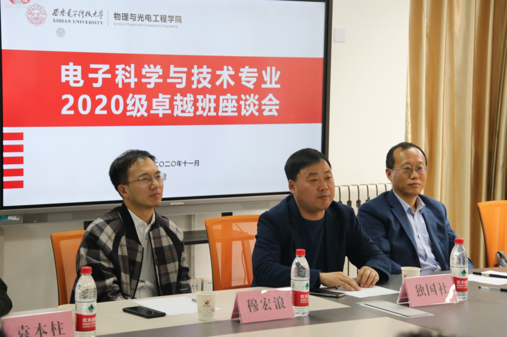 2020级电子科学与技术专业卓越班座谈会在南校区竹园3号书院Ⅱ区323会议室顺利召开。学院党委书记独国社、执行院长邵晓鹏、竹园三号书院党委副书记穆宏浪和课程负责人王炳健与30名新生共同参加了见面会,会议由2020级本科生辅导员王纲主持。