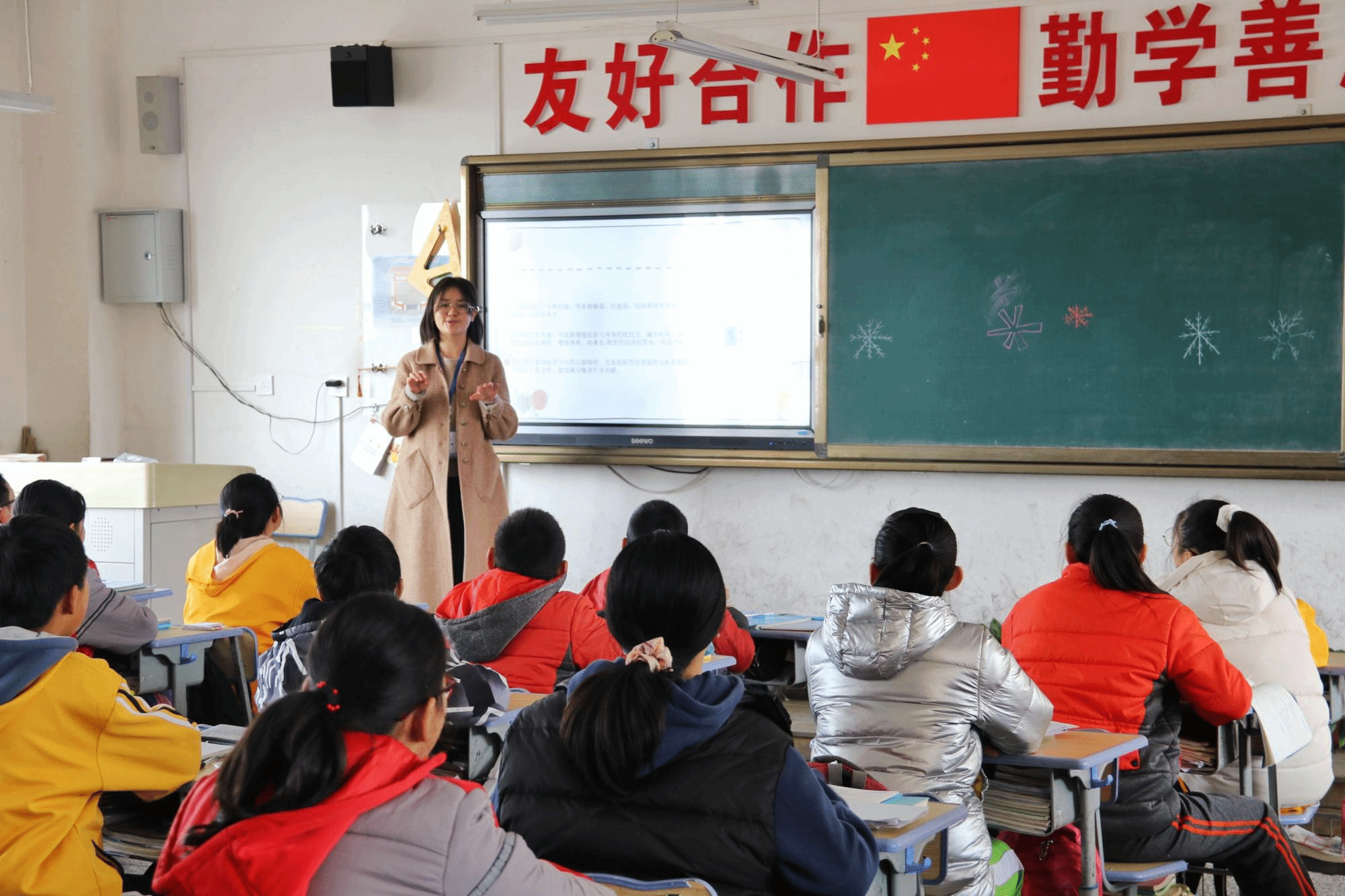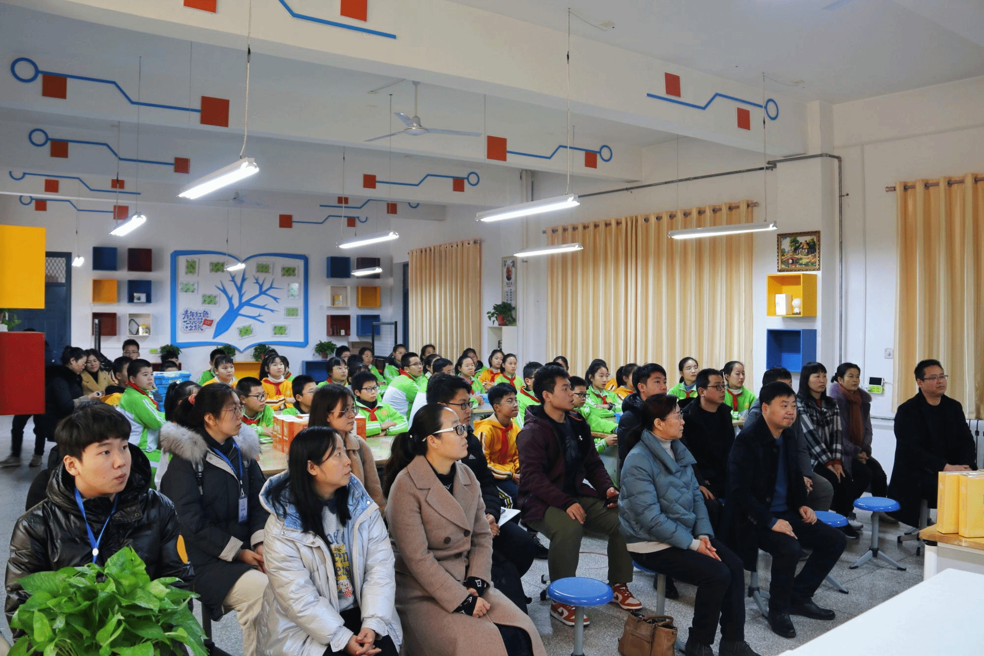 与此同时,志愿者们前往七年级教室开展科学知识讲堂,他们为每位小朋友都准备了一份西电精美小礼物,结合学院专业特色,通过日出颜色变化、季节与农作物生长等日常科普知识,对光线折射、温度传递等知识进行了详细讲解,与小朋友们进行充分互动,课堂氛围轻松活跃,对于积极回答问题的同学予以奖励。活动结束后,志愿者们将准备的两个书包分别送给了本节课回答问题最积极的同学和班级期中考试的第一名,鼓励他们发奋学习,天天向上。
