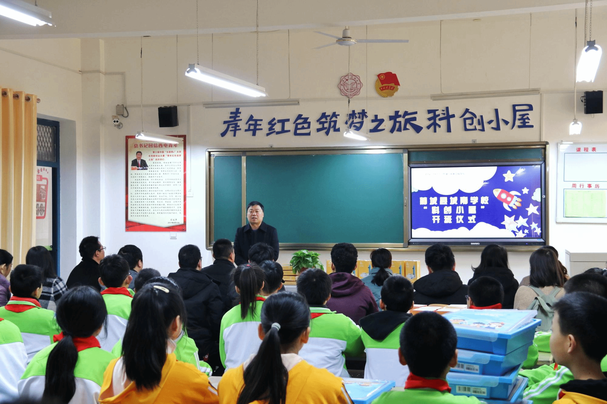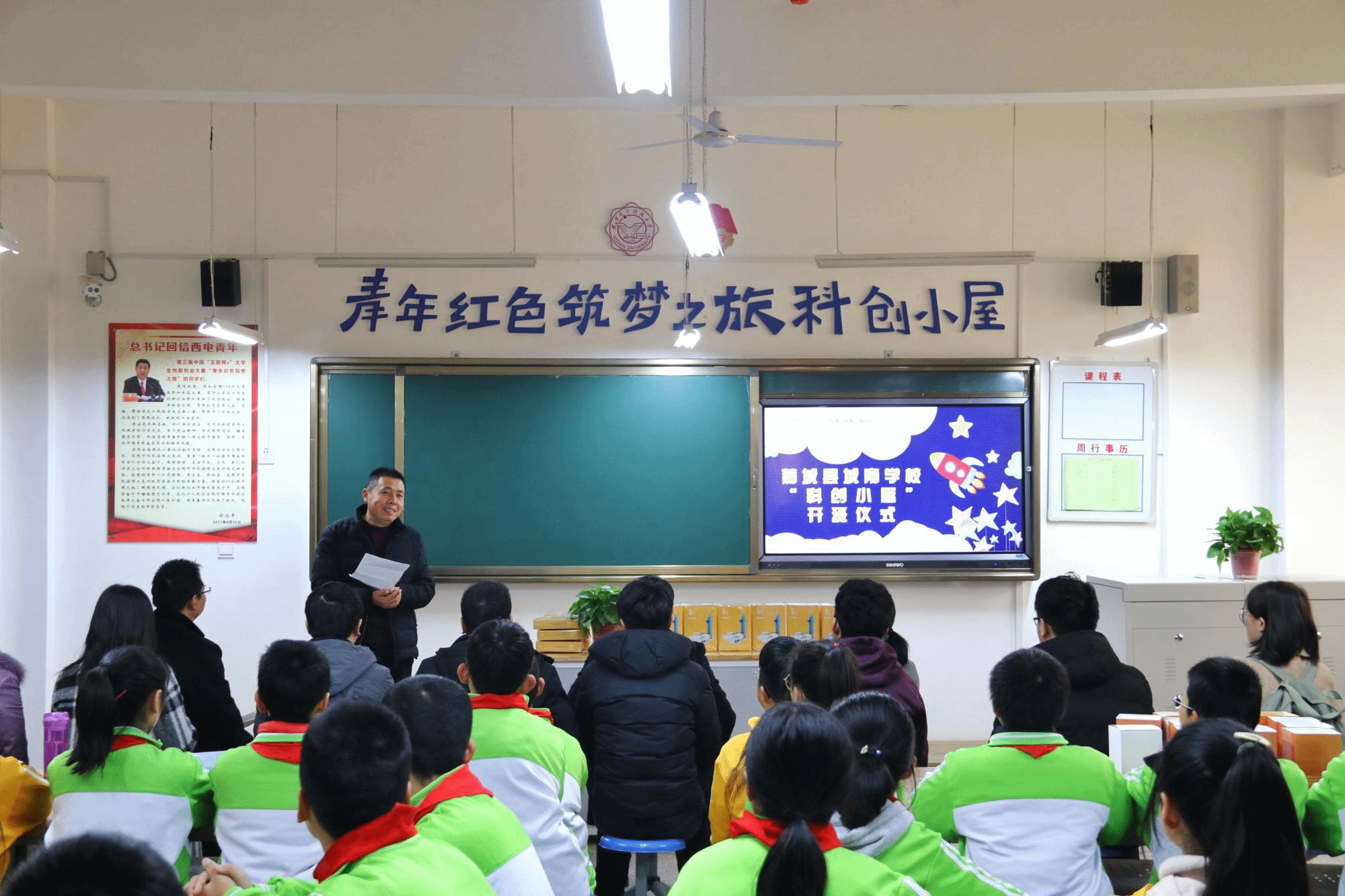 、清华大学等高校的大赛获奖项目、团队成员和部分乡村创客代表分赴延安,通过创新创业项目对接革命老区经济社会发展需求,助力精准扶贫脱贫。期间,西电创业团队发起给习近平总书记汇报实践活动感受,得到了习近平总书记的亲切回信勉励。对于此项“科创小屋”建成,希望同学们认真学习科学文化知识,充分利用网络广泛涉猎,培养兴趣爱好,并以院友王中林院士的勤学事迹自勉,在青少年时打下牢固的知识基础。