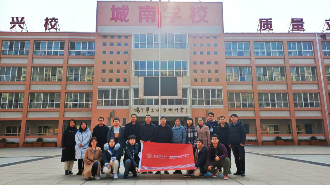 师生赴蒲城县开展扶贫对接工作,城南学校“科创小屋”正式落成开班。学院党委书记独国社、副院长辛红、团委书记陈海涛、本科生辅导员王纲、科创小屋建设负责人姬策同“春雨志愿者服务队”本科生志愿者共同参加了本次活动,蒲城县城南学校党支部书记苏安文、办公室副主任王永刚热情接待,活动由副校长李涛主持。