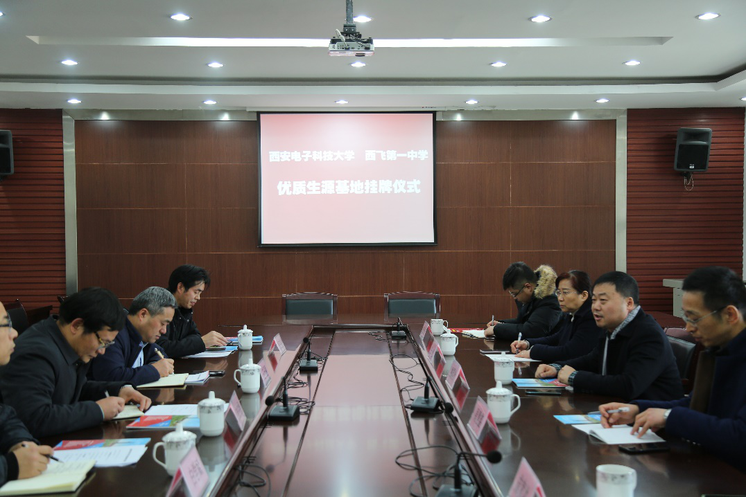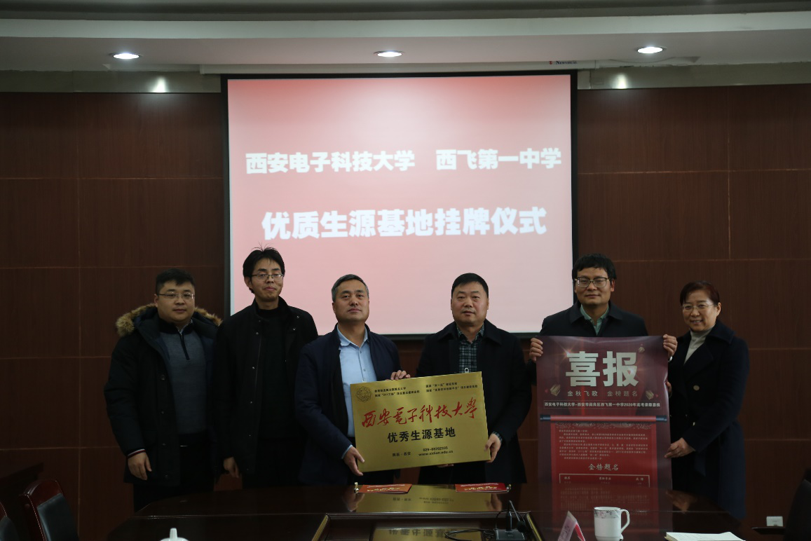 与西飞中学一起签订了“优秀生源基地”协议,共同为“优秀生源基地”揭牌,并向西飞中学赠送了2020高考录取喜报。随后双方就各自特色优势和人才培养工作进行了座谈交流。