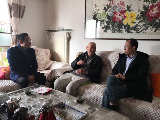 每至一户,学院领导与老同志们亲切交流,关心询问老同志们的身体情况,送上祝福和慰问品。走访慰问中,独国社和邵晓鹏向老同志们详细介绍了学校改革重要进展和学院事业发展情况,认真听取他们的意见建议;老同志对学院的慰问关心表示感谢,并分享了他们在学院工作中的经验,真诚地提出了对学院发展的建议。