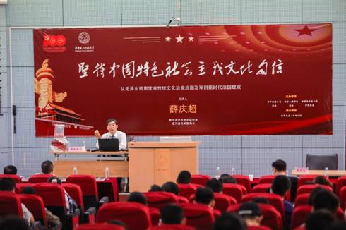 会上,薛庆超教授以赓续红色血脉,与共和国同行的西电校史作为开场,从文化定义的重新解读,坚定文化自信的时代意义,辩证看待中华传统文化,老一辈革命家对优秀传统文化的传承,习近平总书记关于优秀传统文化的重要论述等方面,深入浅出地阐述了中国特色社会主义文化的内涵和外延,号召全体师生进一步传承和发扬中华优秀传统文化。薛庆超教授谈到,中华民族源远流长,悠久历史孕育出的宝贵精神品格,积淀形成了有利于中华民族发展,有利于中华民族团结,在人类文明历史上具有重要地位的中华优秀传统文化。在漫长的革命历程中,老一辈革命家充分运用中华优秀传统文化的精髓,实事求是开展政治斗争,德才兼备选拔任用干部,引经据典指导武装革命,取得了新民主主义革命的胜利。在社会主义建设中,中央领导集体充分运用中华优秀传统文化精髓,求同存异提出和平共处五项原则,坚持“小康”发展中国式现代化,肝胆相照促进各民族团结共进,带领中华民族逐渐走向繁荣富强。建党百年,中华传统文化已经成为了华夏儿女的基因,中华民族的血脉。如今,正处于走向新时代、开启新征程的重要历史节点,全体师生要充分运用马克思主义的观点。方法,科学对待中华传统文化,大力弘扬以爱国主义为核心的民族精神和以改革创新为核心的时代精神,坚持中国特色社会主义文化自信,为实现中华民族伟大复兴而奋斗。