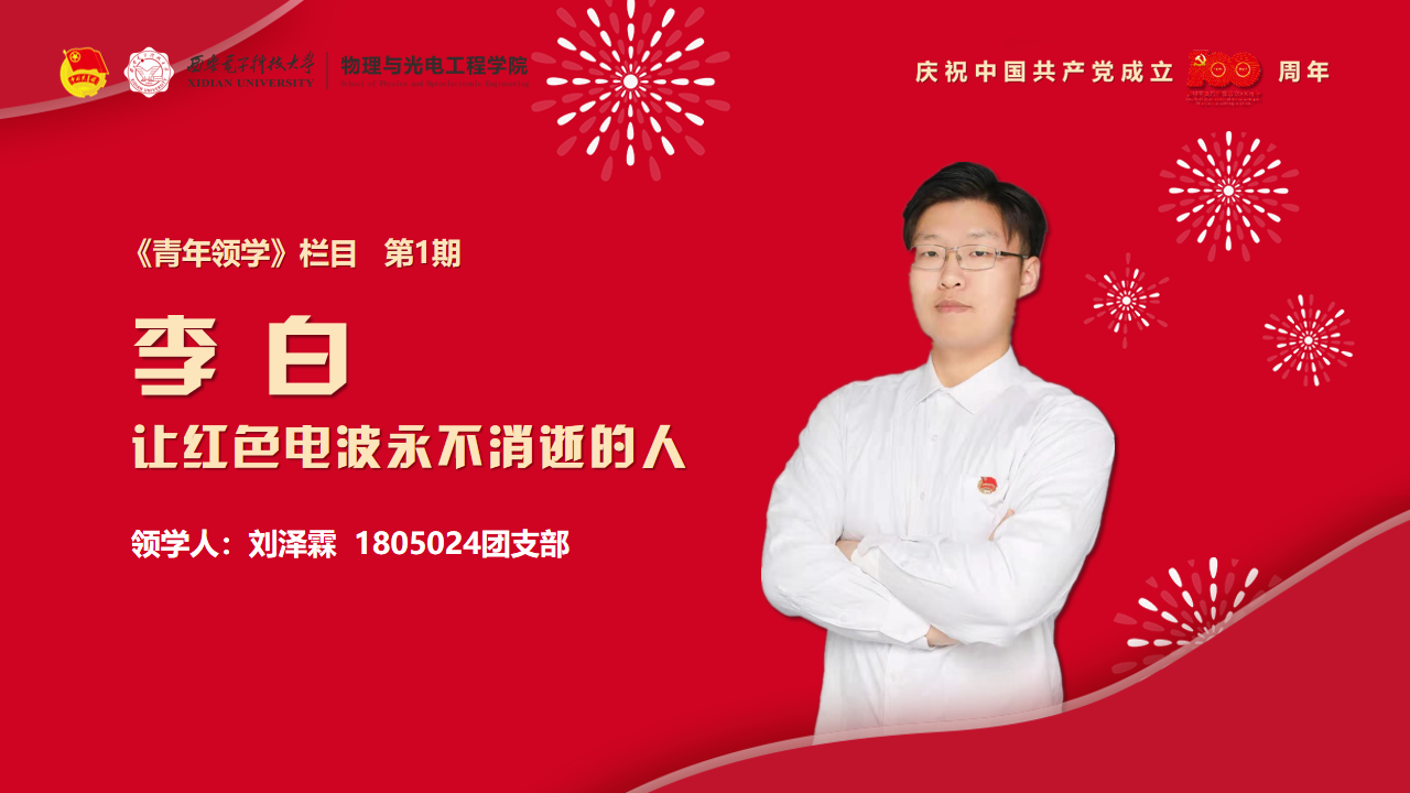 学院学生党员刘泽霖将党史学习教育同爱校荣校教育结合起来,他领学的故事是《李白——让红色电波永不消逝的人》,作为第一期《青年领学》栏目为大家起了好头。故事讲述了在江西瑞金中央军委无线电学校(即现韩漫基地