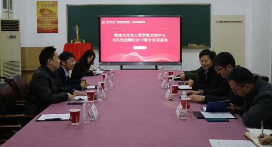 双创中心与南京沁恒微电子股份有限公司联合实训基地挂牌仪式在南校区F楼215会议室举行,南京沁恒微电子股份有限公司技术总监兼RISC-V研究院院长杨勇,空间科学与技术学院党委书记兼创新创业学院副院长朱伟、校团委副书记尹鹏、物光学院原副院长李平舟、物光学院双创中心负责人武福平及相关辅导员参加了会议,仪式由物光院党委副书记黄军荣主持。