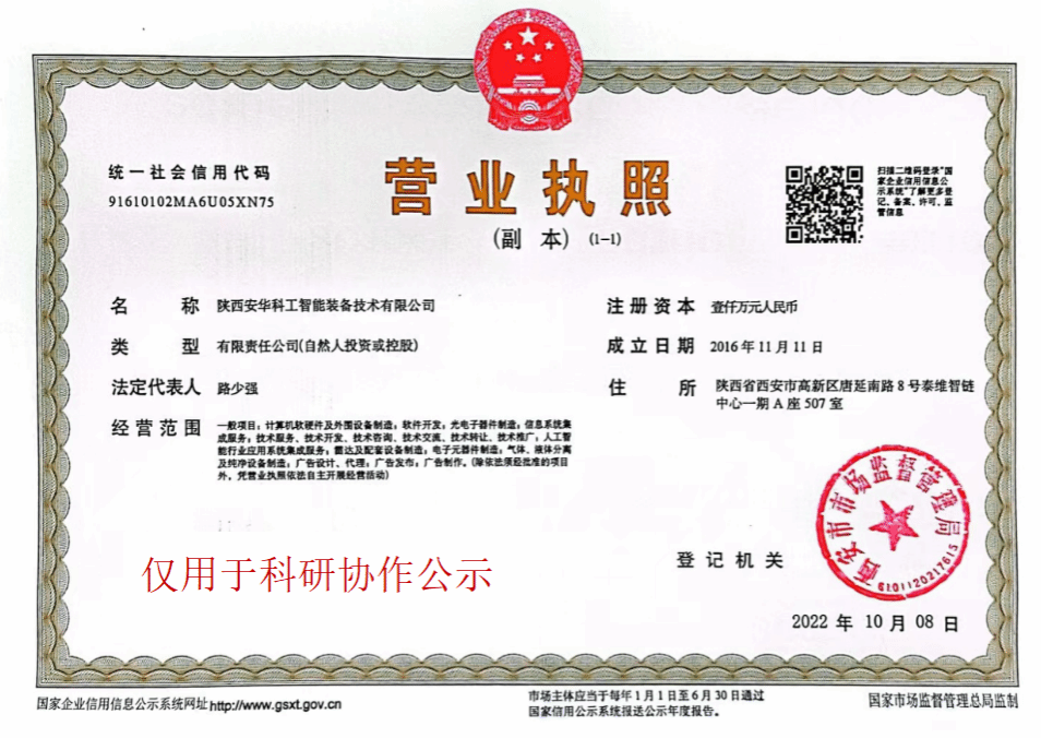 科研协作项目管理办法(试行)》文件规定,为加强学校科研协作项目的管理,确保我方承接的科研项目顺利进行。我校项目负责人郭亮将与陕西安华科工智能装备技术有限公司开展科研合作,现将合作相关事项公示如下: